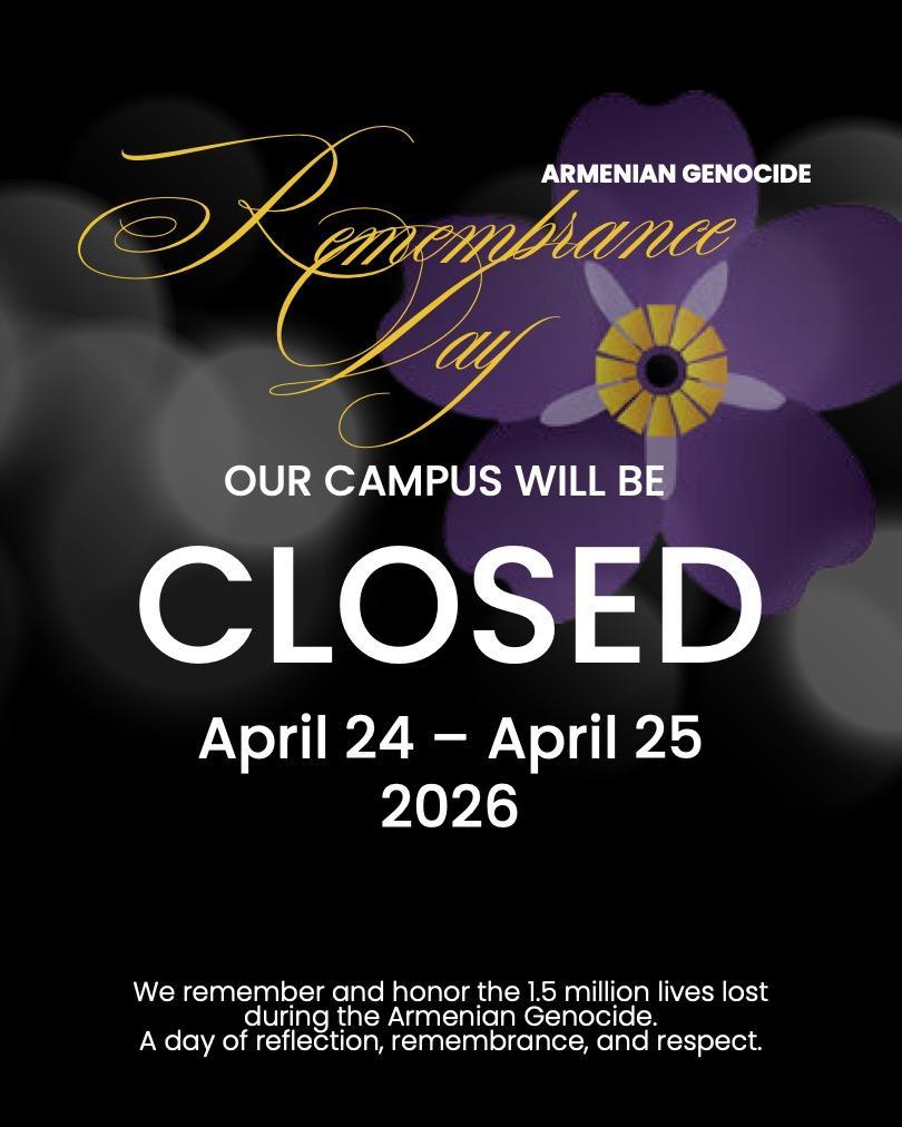 In observance of Armenian Genocide Remembrance Day, school is closed on Friday April 24 and Saturday, April 25. Print